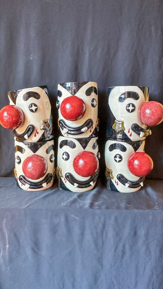 ☆ Depending on the clown mug character you choose to order, one of the discount mugs will be selected at random for you— meaning that your mug will have one of the flaw examples listed above.